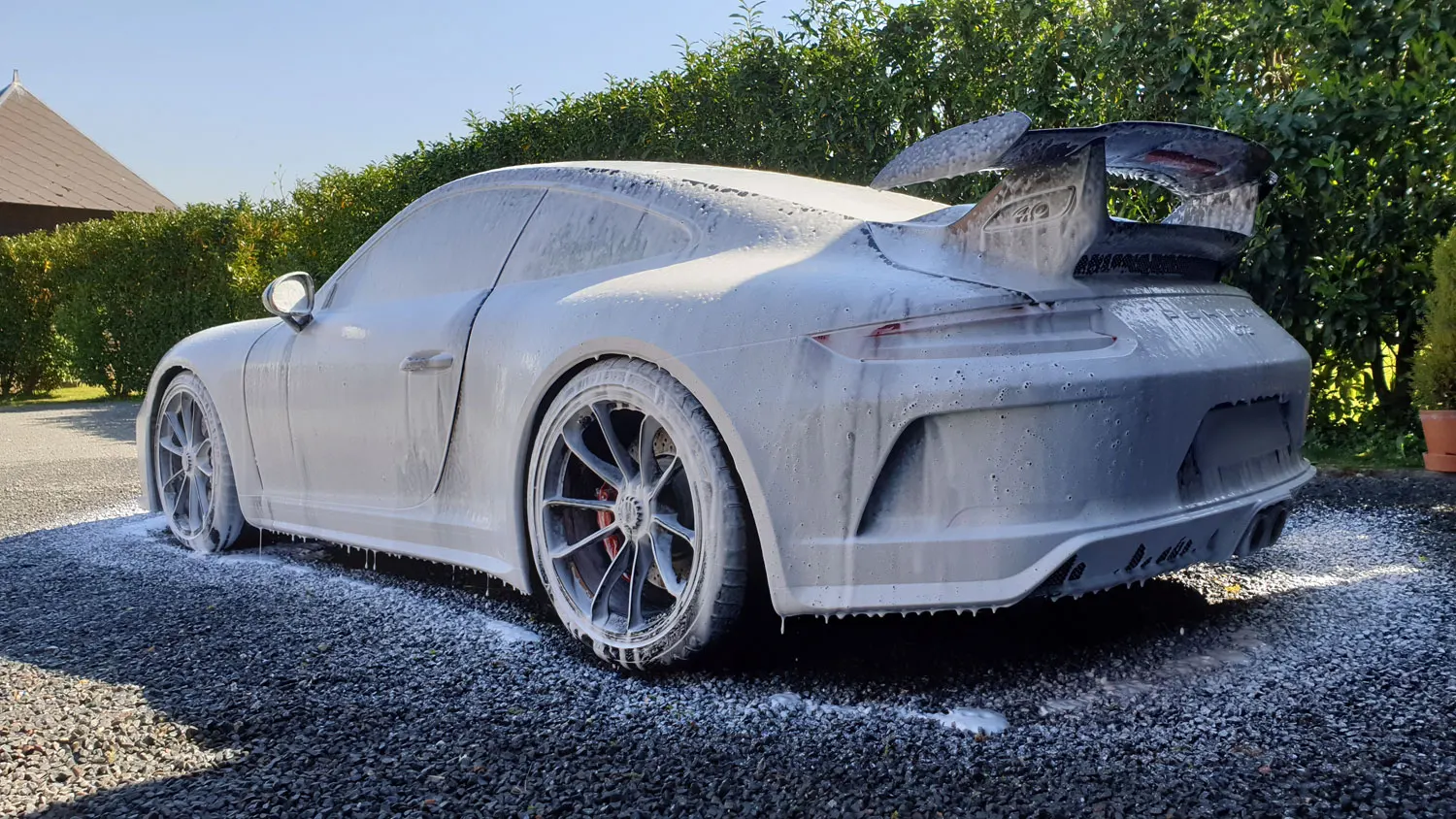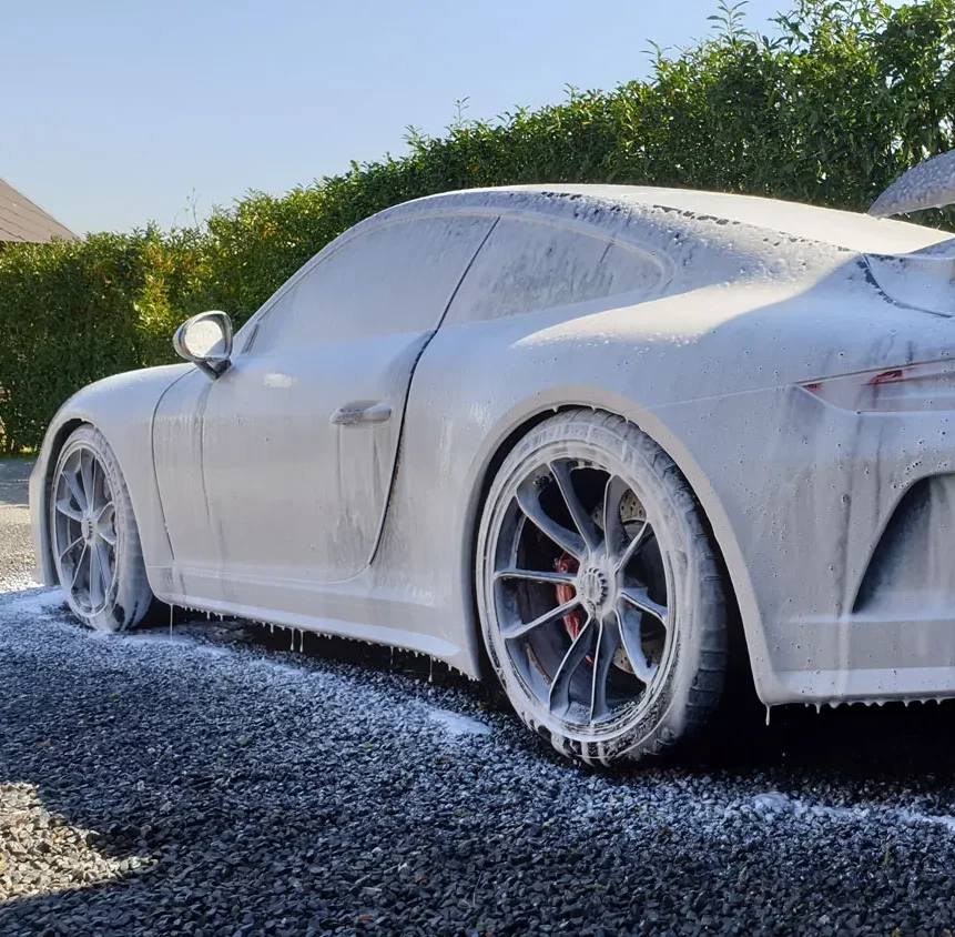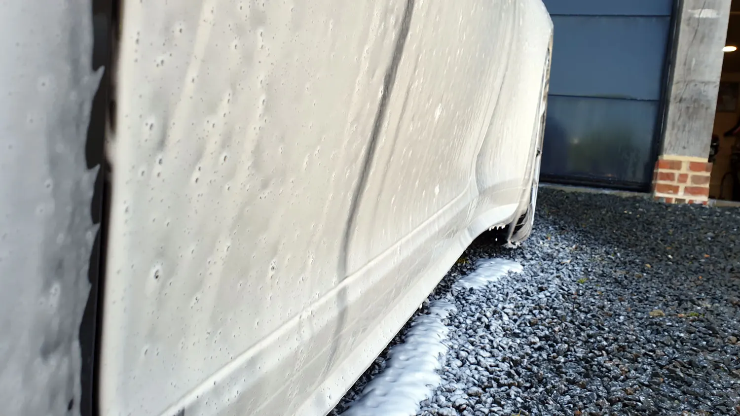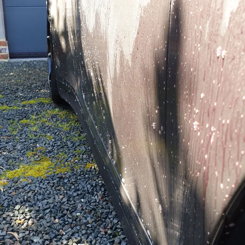 Le prélavage est une étape incontournable pour préparer la carrosserie. Grâce à des produits spécifiques et un canon à mousse, cette phase permet de décoller les saletés superficielles, réduisant ainsi le risque de micro-rayures lors du lavage manuel. Chaque recoin du véhicule est traité avec soin, afin de retirer les particules abrasives qui pourraient endommager la peinture lors des étapes suivantes.