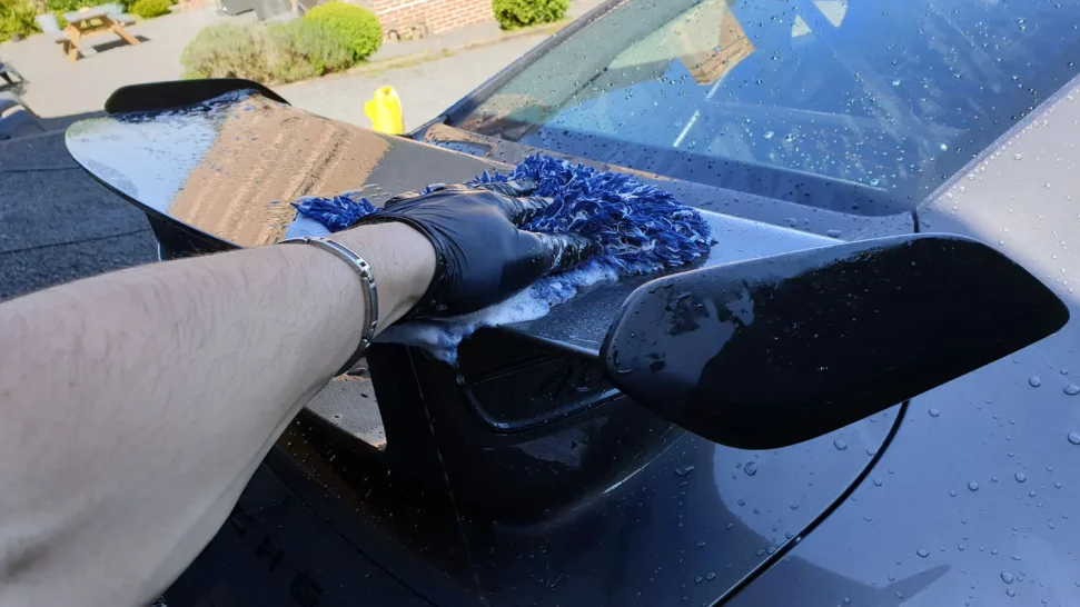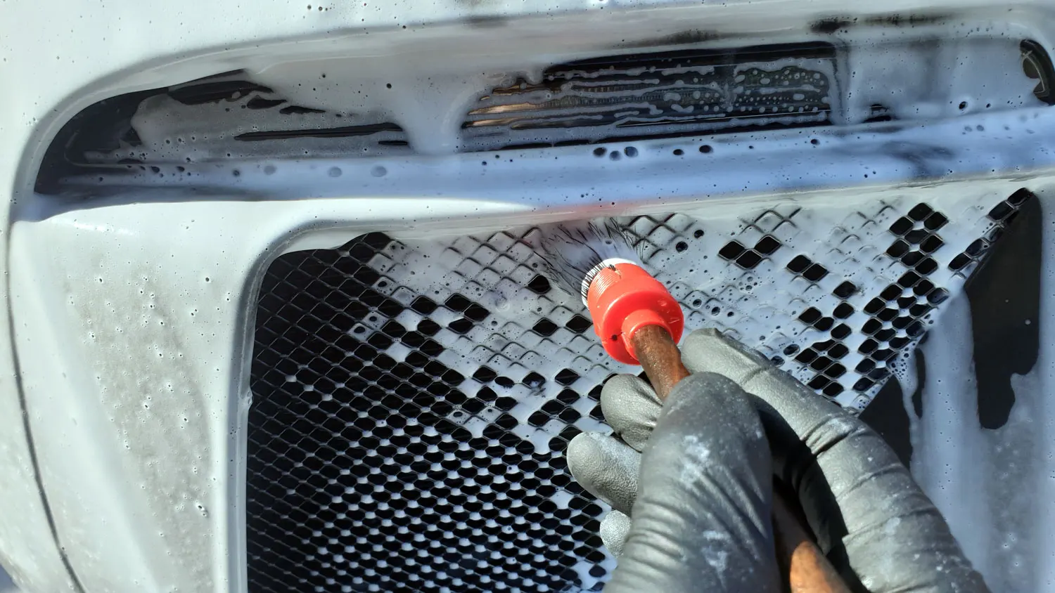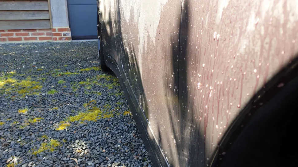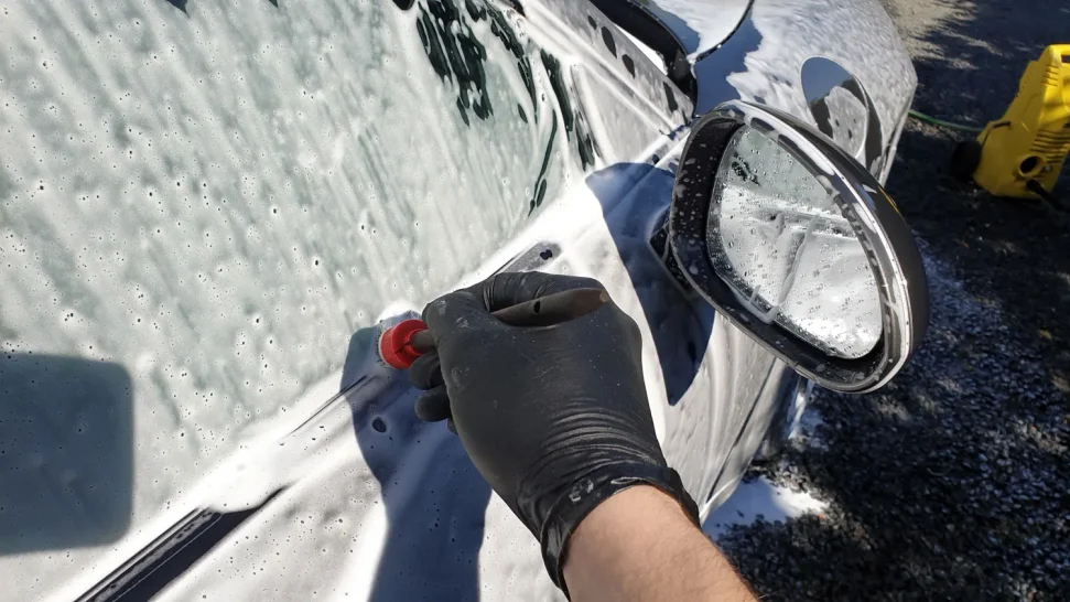 Le prélavage est une étape incontournable pour préparer la carrosserie. Grâce à des produits spécifiques et un canon à mousse, cette phase permet de décoller les saletés superficielles, réduisant ainsi le risque de micro-rayures lors du lavage manuel. Chaque recoin du véhicule est traité avec soin, afin de retirer les particules abrasives qui pourraient endommager la peinture lors des étapes suivantes.